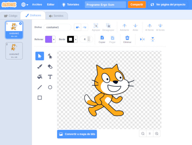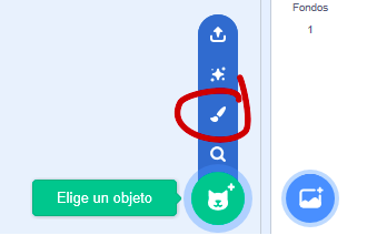 2. Dibujar un nuevo objeto: podemos crear un nuevo objeto desde el editor de Scratch seleccionando el pincel.
