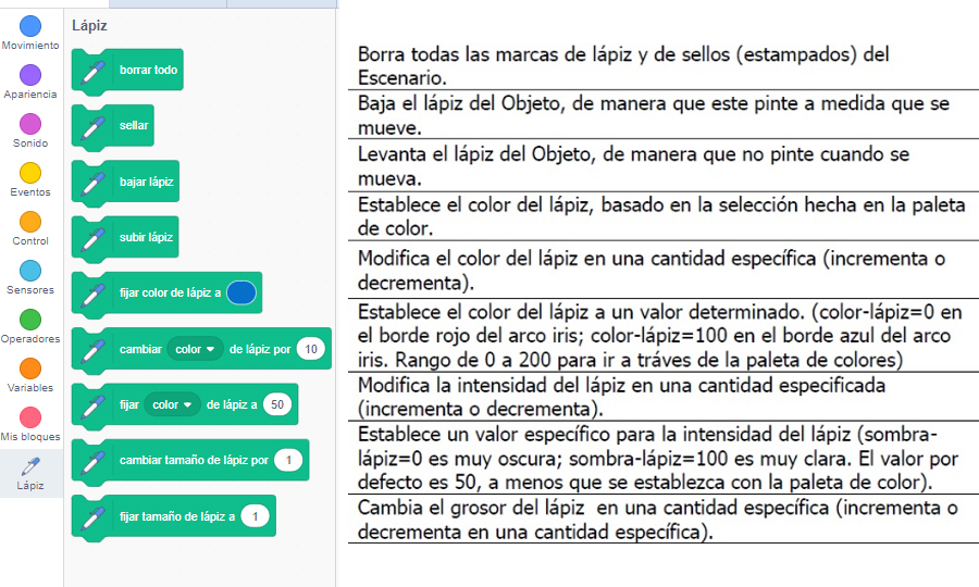 En este tutorial aprenderemos para qué funcionan los bloques de lápiz. Veremos las funcionalidades de sellar o bajar lápiz para realizar el dibujo de figuras geométricas.